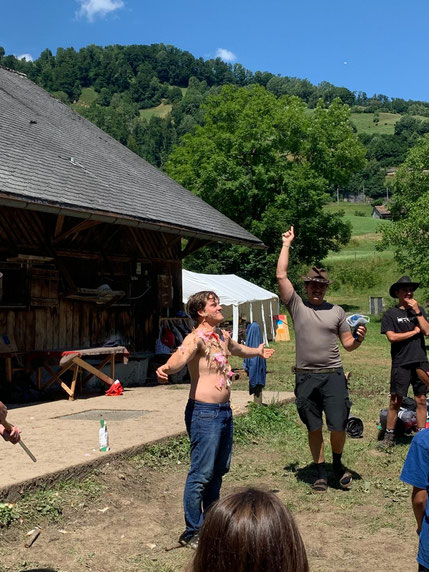 Zum Mittagessen gab es ein feines Riz Casimir aus unserer Küche, welches uns bei dem regnerischen Wetter ein grosses Lächeln ins Gesicht zauberte. Frisch gestärkt sind wir in den Nachmittag gestartet – und haben als Erstes unsere neue Bar feierlich eingeweiht! Danach wurde es sportlich: Wir versuchten uns im Hufeisenwerfen und übten das Lassowerfen wie echte Cowboys und Cowgirls. Am Abend wartete ein besonderes Highlight auf uns: Ein grosses Western-Theater! Jede Zeltgruppe hat am Nachmittag eine kleine Aufführung vorbereitet und diese mit viel Kreativität und Witz auf die Bühne gebracht. Es wurde viel gelacht und applaudiert. Trotz des regnerischen Wetters haben wir den Tag super gemeistert und sind gespannt was der morgige Tag mit sich bringt. Gerüchten zu Folgen hat der Regen das ganze Gold freigewaschen..