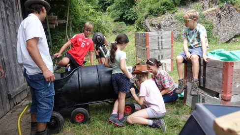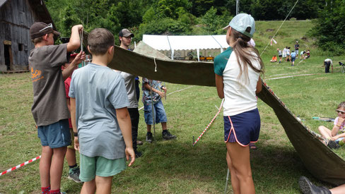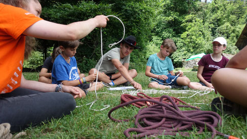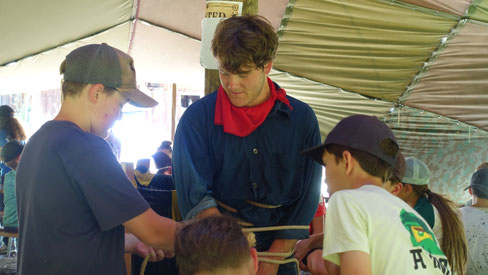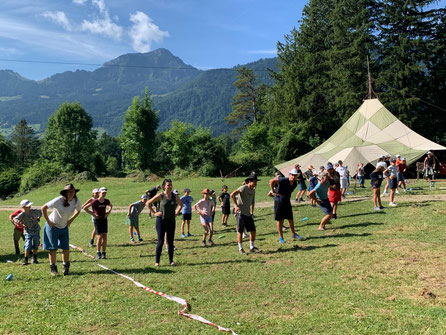 Am Nachmittag wurde es dann ruhiger. In einem gemütlichen Voila-Block warteten verschiedene kleine Challenges auf die Kinder. Da war Teamwork gefragt – etwa beim Gordischen Knoten oder bei anderen kniffligen Aufgaben. Es wurde viel gelacht, geknobelt und gefeiert, wenn ein Team es geschafft hatte. Ein abwechslungsreicher Tag voller Spannung, Spiel, Spass – und einer guten Portion Wildwest-Abenteuer geht nun zu Ende und wir freuen uns auf das nun endlich!! gute Wetter, was uns morgen erwarten sollte:)