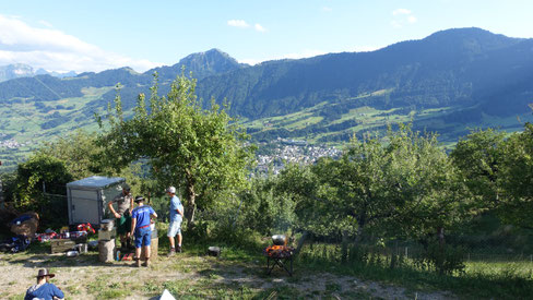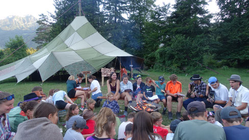 Zum Znacht verwöhnte uns unsere Superküche mit leckeren Westernschmatzlis – ein echtes Highlight nach einem anstrengen Tag. Danach liessen wir den Abend gemütlich am Lagerfeuer ausklingen: Es wurde gesungen, gelacht und langsam wurde es ruhiger. Inzwischen sind alle in ihren Zelten – vertieft in Gespräche oder schon im Land der Träume.