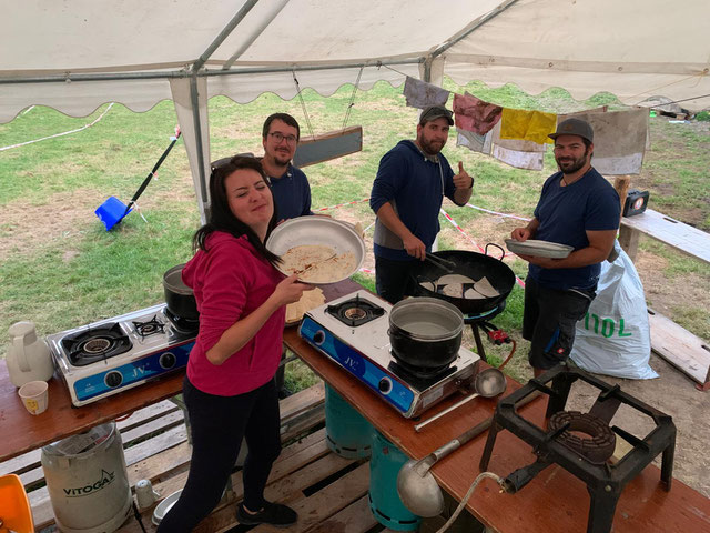 Nach der Ankunft vor Ort stärkten wir uns erst einmal mit einem feinen Mittagessen. Danach ging’s ans Eingemachte: Gemeinsam begannen wir, unsere Zelte aufzubauen und unser kleines „Dorf“ zu errichten. Alle halfen mit, damit unser Lagerplatz Form annimmt. Auch wenn es anstrengend war, hatten wir viel Spaß dabei – und jetzt sieht Jublatown schon richtig bewohnt aus!